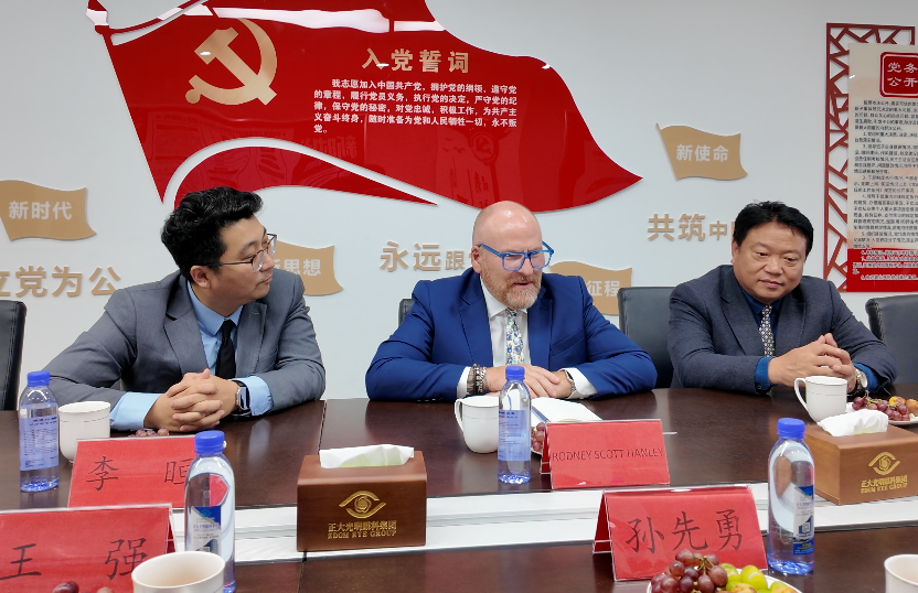 2025年10月22日,美国东北州立大学校长罗德尼・斯科特・汉利率代表团参访正大光明眼科集团潍坊眼科医院,以实地调研为基,以战略共识为引,双方签署合作协议,携手建立 “美国东北州立大学-正大光明眼视光科研与实训中心” 与 “正大光明视觉科学研究中心”,开启 “东方慧见” 与 “国际智慧” 共赴 “光明同行” 之路。