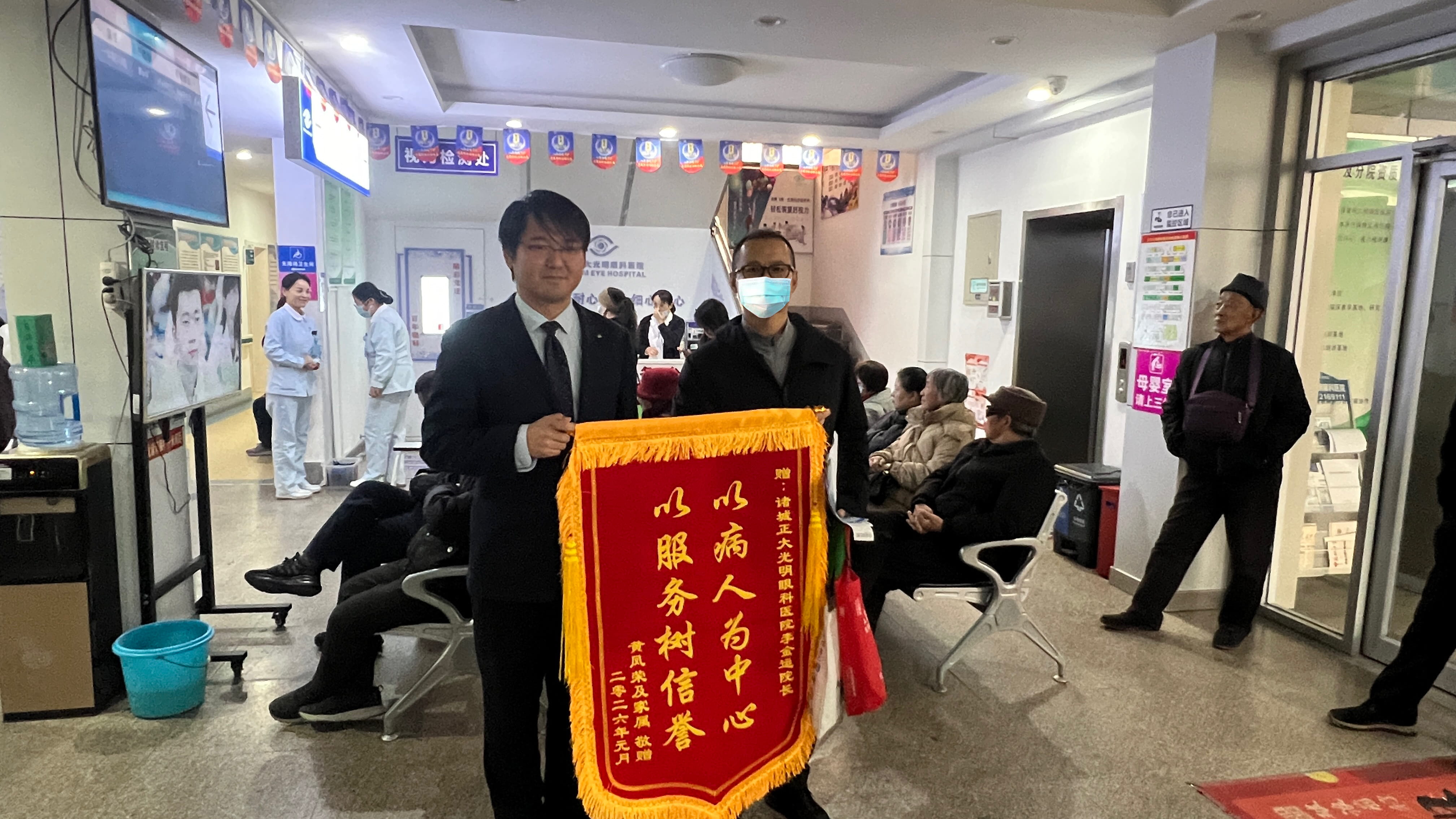 患者及家人送给诸城正大光明眼科医院王剑锋博士及全体医护人员锦旗表示感谢